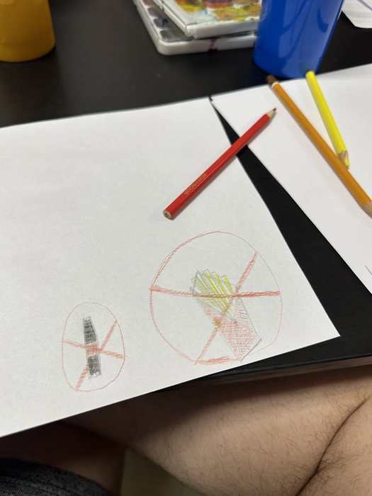Я просто люблю ровные линии и рисовал их пока не получился идеальный конвертик для картошки фри. Но картошка фри это искушение, лучше его перечеркнуть.