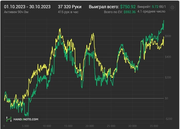 Играл мало, наслаждался вне покерной жизнью, много было мероприятий, поэтому как то так. Новую страту ввожу - выиграл 1-2би и съебался наслаждаться осеней погодой, страта рабочая, рекомендую Немного недотянул до best month, а он примерно составляет без джекпотов 3к$, но еще есть пару дней.