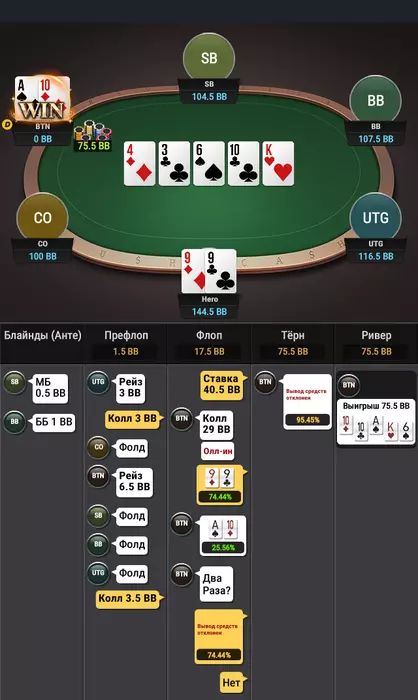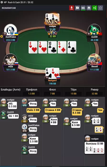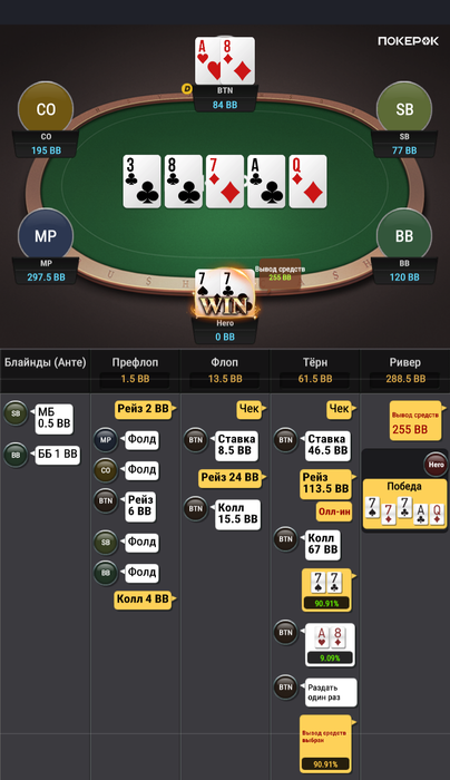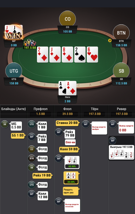 мне очень понравилась эта раздача - на моем уровне понимания покера оппонент сыграл классно.