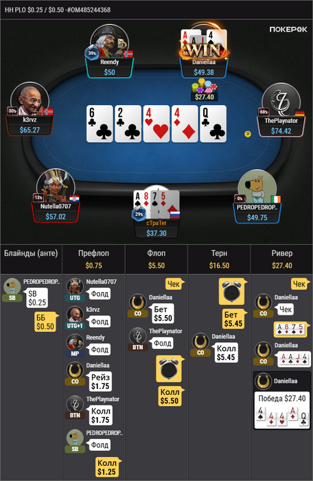 Всем привет, вчера в очередной раз не было хороших любителей за столами PLO25, поэтому попробовал шотнуть PLO50. Удачно вышло, обратил внимание на то что плюсовые регуляры уже чаще 3бетят и в 4бетах встречал не только АА. Но вот что удивило: