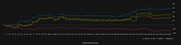 Раздача по горячим следам, меня продолжает дисповать, раза 4 такое было за 115к рук, испытал ровно ноль эмоций, кулера уже давно не выводят из себя, чему я бесконечно рад. Сегодня все велью в натсы, блефы в кетчи. Еще и на сотке залил пару БИ. Скатываюсь потихоньку в B-гейм из-за потери концентрации, да еще и реги пытаются постоянно переиграть, 3бетят в ранних Q9o и колят 4беты😄 Ну вэлком, такому всегда рады.