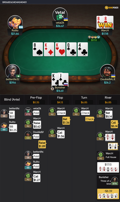 В 4бет поте IP уже проще уйти в чек таком флопе, блокирую еще натс фд. Свою руку разыграл как АК, ее кстати тоже возможно колил бы. Повезло добрать максимум с его руки.