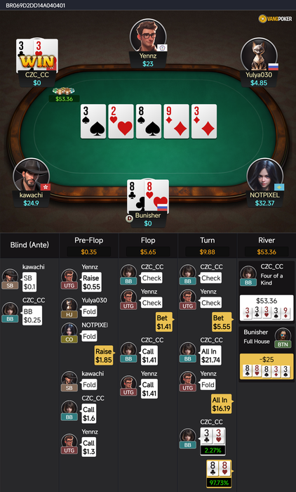 tamandarin, не менее важно как мы защищаемся на ставки, особенно при защите большого блайнда. Например, ситуация, BB vs SB, борд Ахх, на стандартную ставку я не уроню Кх и даже Qх, тоже самое касается BB vs BU, но там, конечно, нужно добавлять блефрейзы — без позиции тяжелее защищаться коллами.