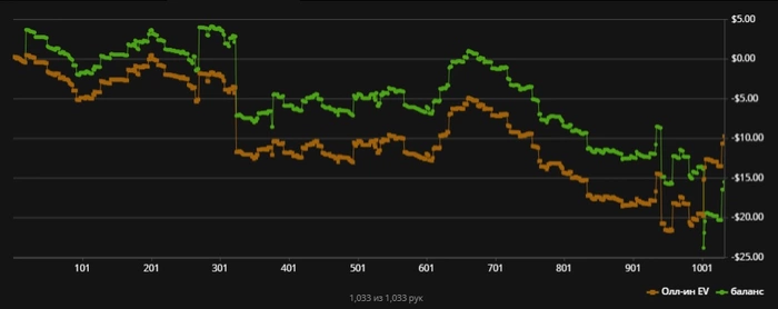 Если взять мой общий баланс в руме и тот, который я не так давно выводил «на всякий случай» из рума, то суммарно у меня чуть больше 1к$. По сути это нормальная сумма, что бы попробовать шотать NL25, но есть одно НО. В прошлом кое-что произошло в семье и я уже отложил N-ную сумму на это время. И как выясняется, нужно в 2 раза больше... Мдэмс, неудачка вышла. Мы даже угарнули сегодня с родней, что сейчас жить дешевле, чем умирать 😁 Хотел на эти деньги поставить кондер себе в квартиру, говорят это лето будет жарким (хотя по маю не скажешь), а у меня вообще нет сквозняка и все окна выходят на солнечную сторону. Такие лета уже были и я пздц как мучался.
