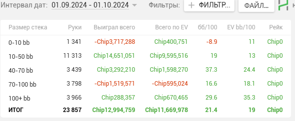 Винрейт 21 бб/100 (ev=19.4 бб/100)