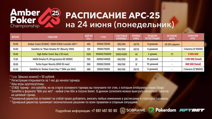 6) 22:00 сателлит к турниру Amber Event Day 1.
