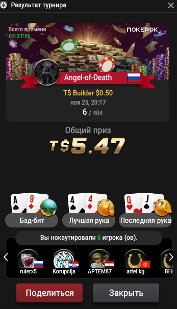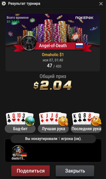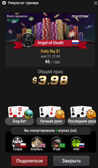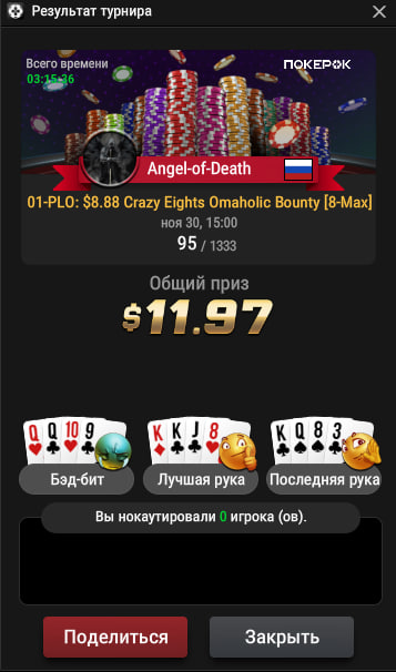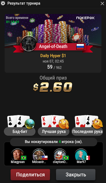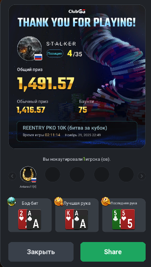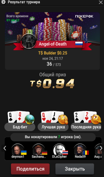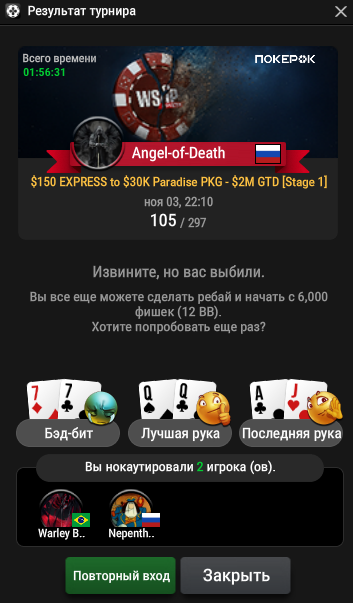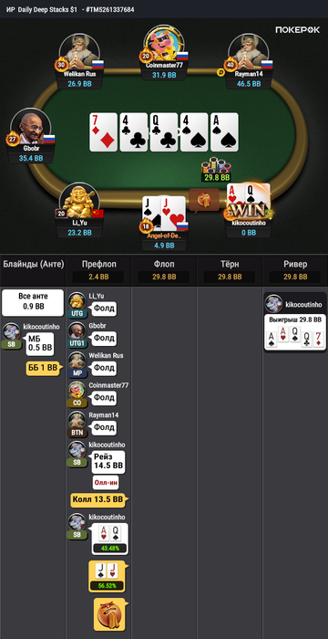 ПОКЕР ДОМ 👉 (МТТ - 4) 👉 (₽ -572) 😔