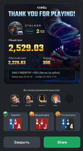 ПОКЕР ДОМ👉(МТТ-22)👉БР(₽1100)