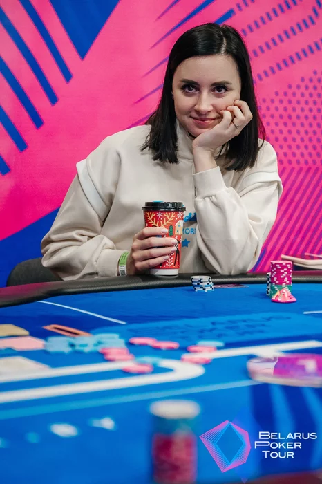 Уважил и получил даму на флопе. Со стеком 190к пересел за другой стол, где столкнулся с Алиной Полегошко. Открылся с , Алина защитилась на ББ с .