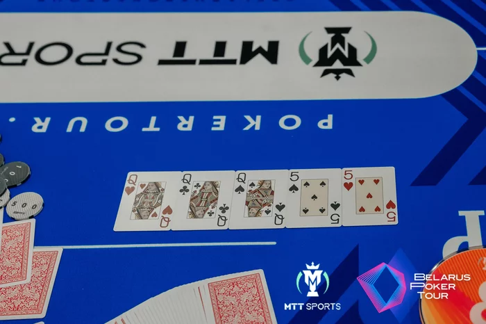 На оставшиеся фишки поставил пуш в открытие Ильи Рогова, но вхолодную запушил с блайнда Илья Гражданцев. Ехать пришлось с против , при том, что Рогов выбросил такую же руку.