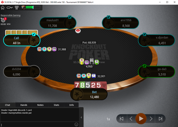 Возвращаясь к твоей сдаче. Сражу сказу, что не представляю себе уровень игры в регулярных микролимитных турнирах по сингл дро, так как играю такие байины только во время серий, а там поляна в разы слабее по твоим словам.