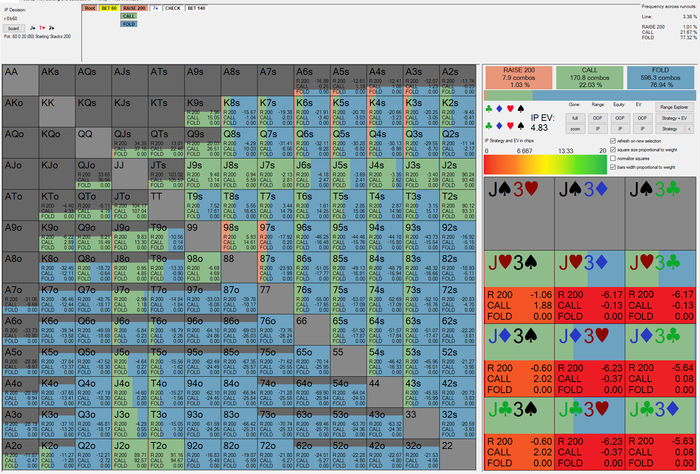 nafnaf, Спс за расчет, интересно, что солвер играет практически всегда без рэйза, как мне кажется рейз скорее плохой, чем хороший, фиш выкинет всё слабее кроме второй пары (а ее он будет очень редко ставить таким сайзом), по итогу мы просто выбиваем очень много рук слабее и получаем колы от рук сильнее. Даже если там играет какой то агрофиш, который ставит все улицы, логичнее просто отколить любой терн от него, чем запихать флоп имхо.