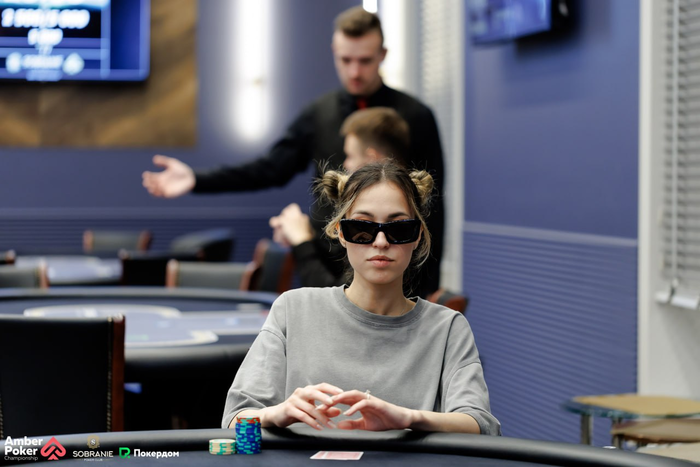 Олег Сунцов (750к) с малого блайнда запушил , на BB Дарья Смирнова (170к) сыграла колл с