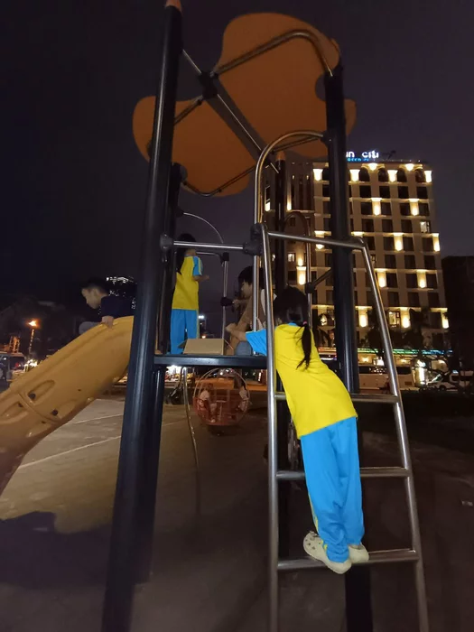 Сначала предложил девчонкам самим походить и угощать детей на площадке, а потом подключился сам, взял коробу и пошел угощать всех детей. Накормили и взрослых, и детей — особенно вьетнамских 😊