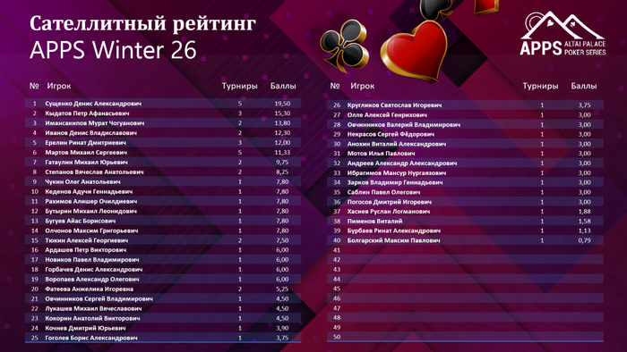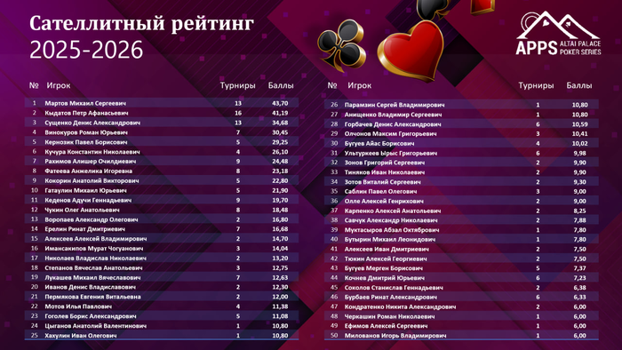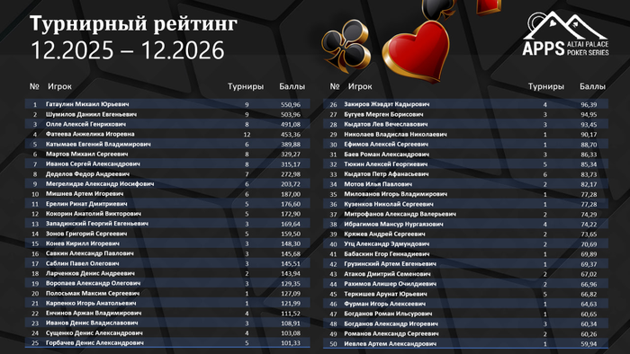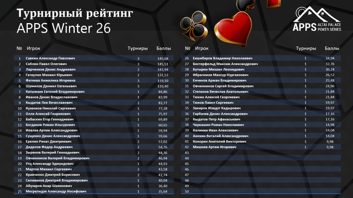 В турнирном рейтинге серии тоже серьезные страсти 😳 Александр Савкин удерживает лидерство, но на пятки наступает Павел Саблин и Денис Ларченков. Разница в очках минимальная, так что все может измениться в любой момент!