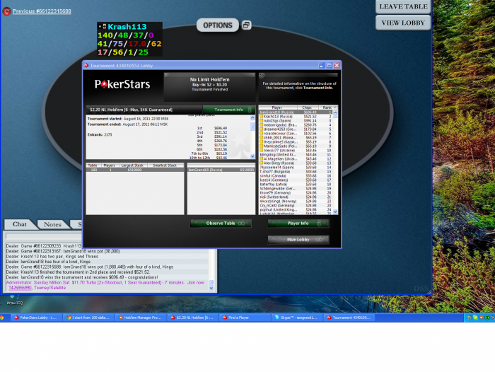Игра PokerStars #66121434749: Турнир №434010552, $2.00+$0.20 USD Холдем Безлимитный - уровень XXVI (10000/20000) - 17.08.2011 5:39:36 MSK [16.08.2011 21:39:36 ВВ]