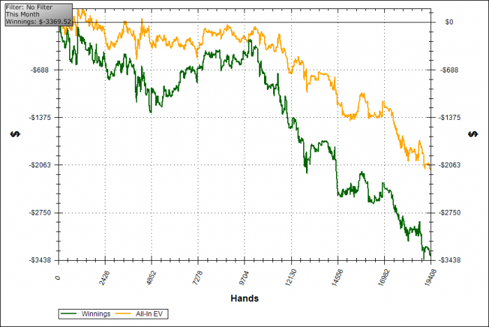 Сегодня день начал по плану. Сел за 6 обычных столов 6мах. Настрой боевой но .... опять не оптимальная игра + недоезды в сравнениях принесли за час игры -450 дол. Как думаете настрой у меня был? вот вот.... но я решил во что бы то ни стало придерживаться плана. Маленько позанимался , прогулялся до магазина, покушал , и снава сел играть. Но уже сел на 4 стола зума. Все таки к нему очень привык и на обычных столах много исполняю, что мне категорически делать нельзя. Потому что не вижу тормозов когда блефовать начинаю. Давно наверное помечен у ребят как блефовая обезьяна). В зум все пошло в гору. и ев линия не отходила от реальной и фиши оплачивали как надо. В итоге отыграл как положено 3 раза по часу.