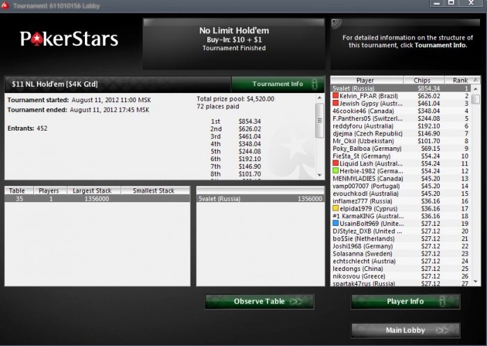 Доброго времени суток всем! Да, действительно, я давно ничего не писал в дневник (около месяца). Просто если честно, то не было ни желания, ни настроения что-то писать. В покер толком не играл, так катал МТСНГ на 180 тел, в микроплюс, но что об этом напишешь. Да еще и кое-какие другие личные проблемки навалились и надо было их решать. Нормально катать начал, только последнюю неделю. Игрой своей вроде доволен, а вот результатами не очень, как это часто и бывает)))