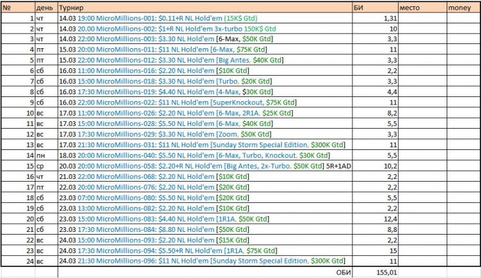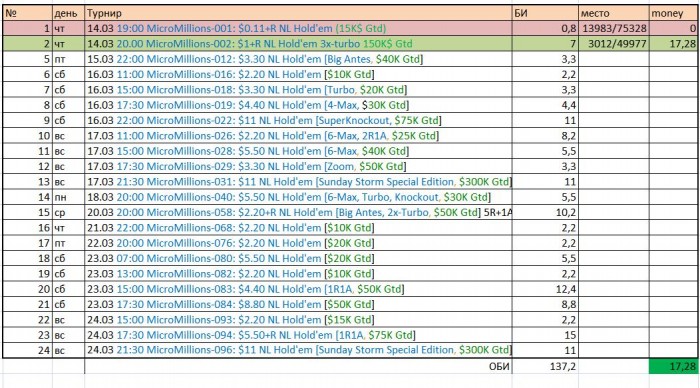 Теперь я готовлюсь к MicroMillions. Я уже составил себе расписание и на этот раз у меня есть желание и банкролл чтобы откать 4 часть турниров.