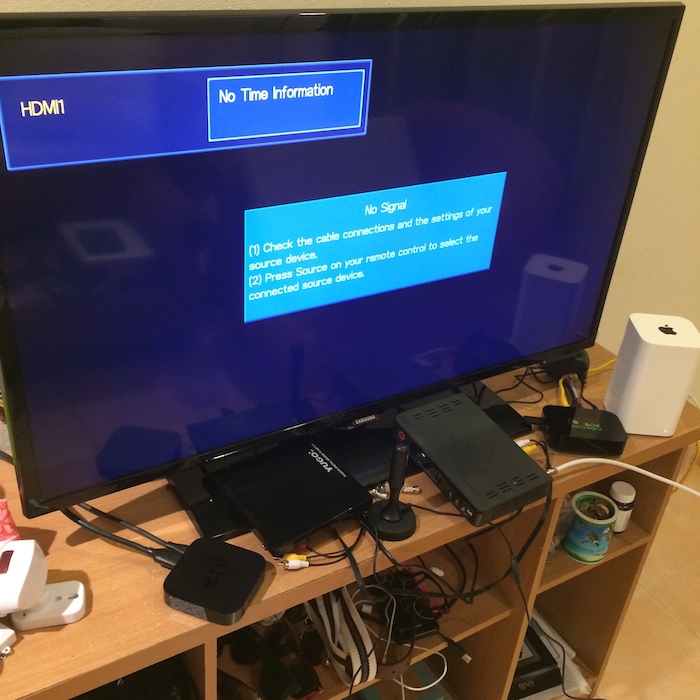Последнее событие особенно тревожит меня. Я уже купил хренову тучу приставок в надежде, что какая-нибудь точно мне поможет. Сначала apple tv - почти бесполезная штука тут, но полюбился стримминг с компьютера на телек. Смотрим так сериалы теперь. Следом была какая-то черная антенна, потом андроид бокс, прости господи. Я готов дать денег тому, кто заберет эту ошибку технологии у меня. Сегодня купили еще одну коробку, которая нифига не работет без кабельного телевидения, которого у нас нет, хотя кабель есть! Ну и под вечер приобрел маленькую дрянную антенну для цифрового телевидения, которая выдает тут 5% сигнала! Спасибо, блин. Впрочем, футбол тут начинается в 5, 6 утра - может просто посплю.