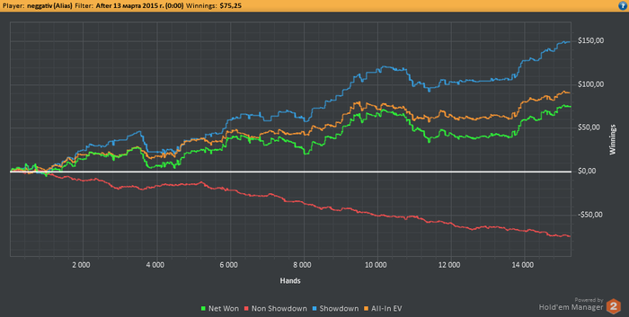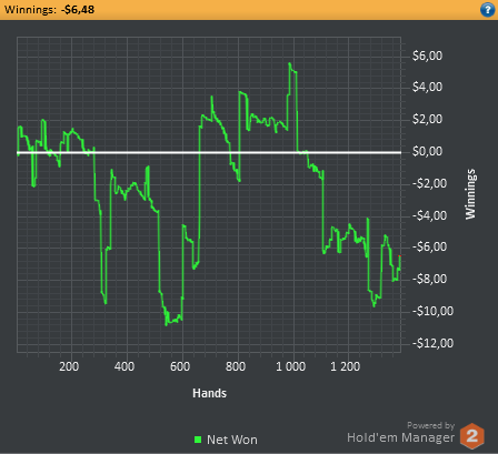 Да, дистанция получается на 6 столаз с селектом какая-то прямо грустная. Сегодня я катал 3 часа без перерыва и всего лишь 1200 рук. Но я терплю, не срываюсь в зарубы, не открываю больше 6 столов. Дисциплина мать ее!