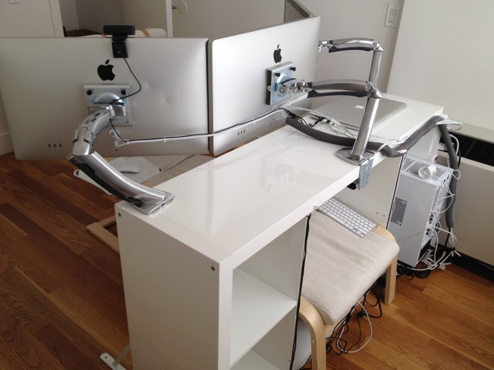 Про бликующие глянцевые мониторы промолчу, это по вкусу, но мне кажется, что в таком сетапе отражений будет больше, чем видимости на экране.