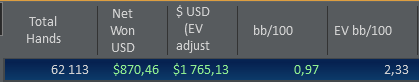 Понятно что второй способ не катит когда дисперсия огромна. Первый хорош но он идет в ущерб количеству игры. В целом мне нужно изменить подход в оценке качества своей игры(не на основе результатов), научиться допускать и прощать свои ошибки, а также понять что сессия лишь мизерный отрезок в покерном пути, и от меня зависит выложиться по максимуму в каждом из этих отрезков.