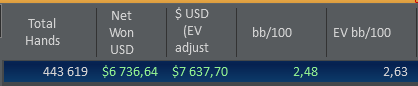 Я же слишком ориентируюсь на результат, как некий показатель уровня моей игры. Сегодня выиграл-молодец, проиграл-никуда не годишься. Это некая смесь неуверенности и перфекционизма. Именно поэтому подсознательно я вывел два действенных способа борьбы с этим(особо не сознавая с чем): 1) Много теории как подпитка уверенности 2) Постоянное подведение итогов и подсчет профита, как осознание того что я не бесполезно провел время и выиграл денег.