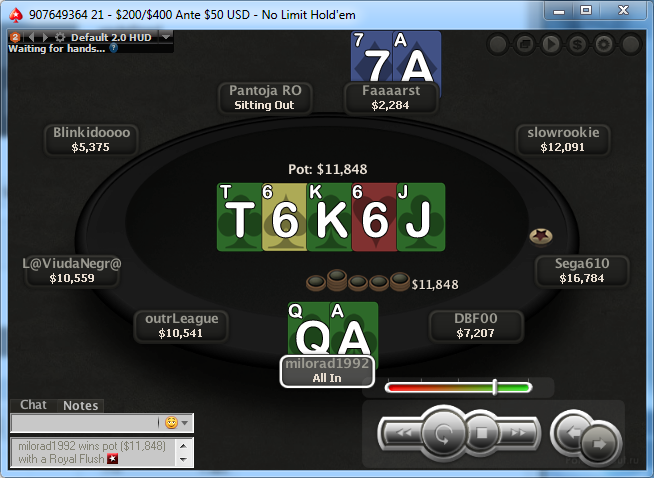 masterc50 goes all-in 2,968, milorad1992 calls 2,968, LeBronn2333 goes all-in 7,325, 6 folds, milorad1992 calls 4,357