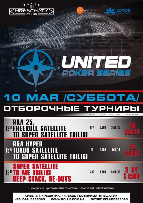Колесо тбилисского UPS с каждым днем раскручивается все быстрее... Стремительно увеличивается количество участников главного турнира серии. Тут и сателлитчики, которые отбираются на Europe-Bet и Lotos Poker (их уже больше двух десятков, а впереди еще несколько финальных турниров), и победители живых сателлитов из 14, как теперь выясняется, городов стран СНГ. А также профессионалы, которые уже подтвердили свое участие в UPS без всяких сателлитов (или надеются выиграть билет непосредственно на серии).