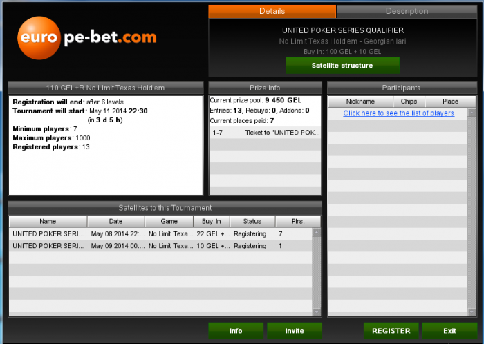 Для всех желающих поехать в Тбилиси, в Москве состоится сателлит на Mein Event $770. Сателлит пройдет в ближайшийпонедельник 12 мая в 15:00. [attachment=197042:image.jpg]