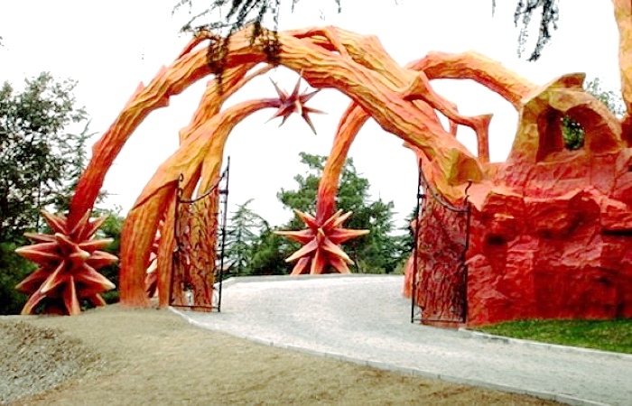 Мультик, кстати, никакой не современный, а дремучего уже 1968 года. Видимо, заветы Бомборы многим 30-40 летним грузинам вошли в кровь и в плоть, - и когда в 2005 году встал вопрос, какого героя увековечить в камне, выбор был очевиден. На входе он изображен спящим перед своей пещерой... Сооружение, вроде бы, совершенно детское, а гуляешь по этому парку, и чувствуешь себя как дома. В старом-добром СССР грузинского разлива. Вокруг, кстати, и музычка звучит соответствующая.