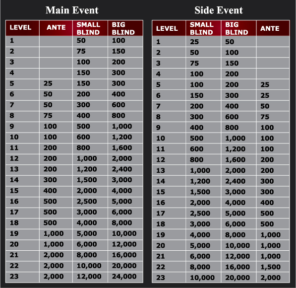 ch0ck0, COMBINED DAY турнира MINI UPS EVENT начнётся с блайндов 200-400 анте 50, таким образом те кто пожелают зайти в турнир именно в этот день будут иметь в своём распоряжении стэк 70.000 почти в 200бб Полную структуру блайндов на все турниры выложим сегодня ближе к вечеру