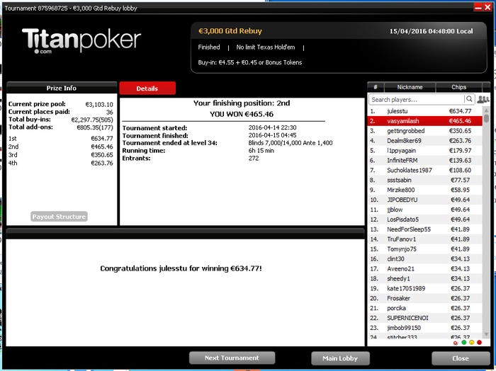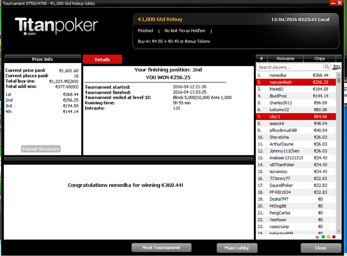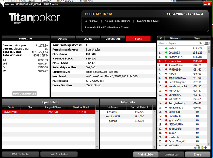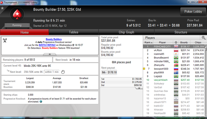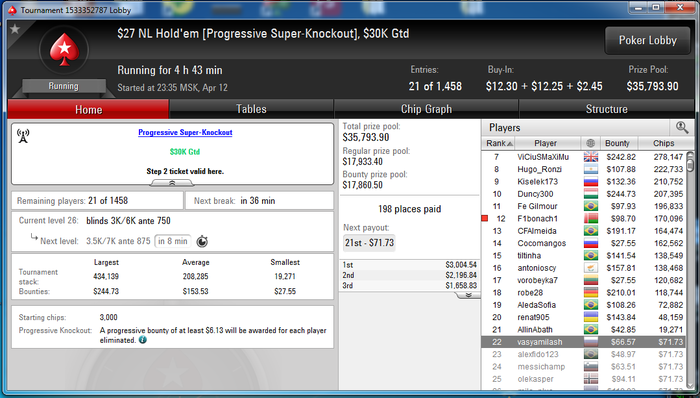 За апрель было несколько финалок на пс, и около 6 предфиналок (в килополях) - такую боль переживать и быть зависимым от резалтов в плане денег я пока не могу... так что только переживать боль готов)).