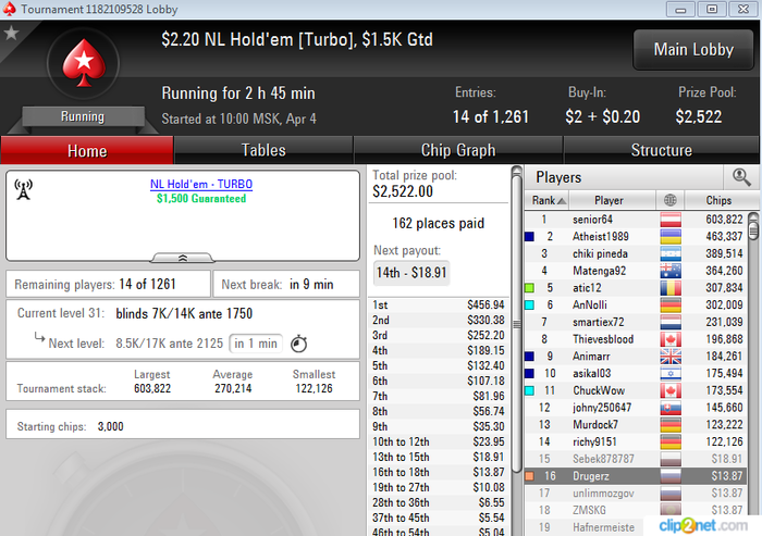 Всё выбирал что катать лучше. Нравятся 45мах, но нехуя не даются мне)) Ток один раз топ 3 занёс в них. На данный момент катаю одностоловые турбинки 1,5 миксую с 3,5. Сегодня попробовал 9 столов одновременно, когда на 6 начался баббл, это трешняк, не понимаю как реги катают по овер 20 столов одновременно В этом вопросе я пока днище. Пока буду по 6 столов катать, привыкать к пуш-фолду и прочей снгшной хрени. Тыкаю в снг визарт понемногу. Также катаю мелкие мттшки. До этого подключал центовики, но больше не буду, не выгодно нехуя Сегодня катал серию мттшек, во всех вылетел, остался один за 27 копеек, шёл со средним стеком в глубоком итм уже, но так заебался катать их уже, что решил вылететь ибо там только на топ3 надо расчитывать, остальное дерьмо обсосное. Но старзы не дают вылететь, когда хочешь) Пихаю с утюга с 25бб, принимает тип с 20 бб, ну я его переехал, написал ещё в чате что он фиш ебаный, далее сижу на бб с , тип на кнопке стилит минирейзом, я пуш ясен хуй на 40бб, этот тип колл, показывает , ну ясен хер у меня 8 на флопе, я в чат кидаю рыбку сразу же. До финалки ещё рыл 90, но мне так лень сидеть ждать, пихнул на кнопке какое-то дерьмо, тип на бб с таким же стеком изи принял тоже с дерьмом, ну и на этот раз старзы меня поняли и решили отпустить Заработал 90 копеек Поэтому теперь буду из мттшек катать только с хорошей гарантией или дешёвые ребайники.