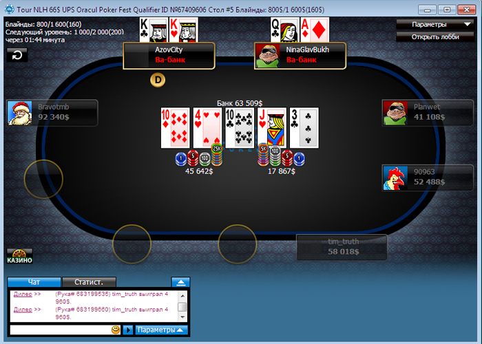 Кстати, там уже идет хедз-ап за поездку на Oracul Poker Fest!