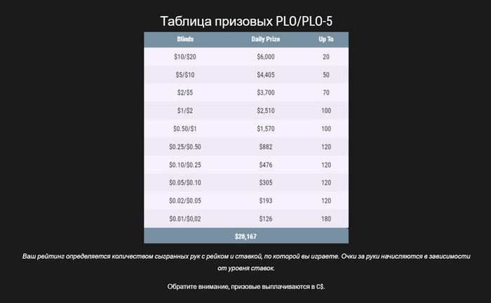 ПокерОК, Вы правильно поняли. Я не понимаю как именно начисляются баллы в этом лидерборде. Понятно теперь что не от уплаченного мной рейка. А есть где-то ссылка где описано как именно начисляются баллы? Что значит колонка Up to?