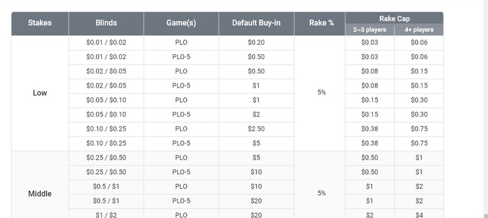 Рейк 5% и для указанной выше PLO, и для R&C.