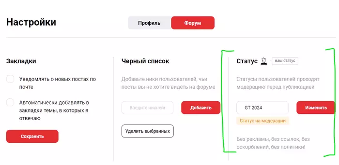 Статусы теперь можно менять прямо в настройках профиля.