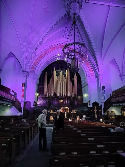 По дороге увидели церковь. Внутрь мы никогда не заходили, поэтому сегодня самое время для того, чтобы восполнить этот пробел. Шли какие-то приготовления к Пасхе, мужик играл на органе. В кадр не попало, но справа, посреди зала, находился небольшой пункт для звукорежиссера (?), как на различных концертах.