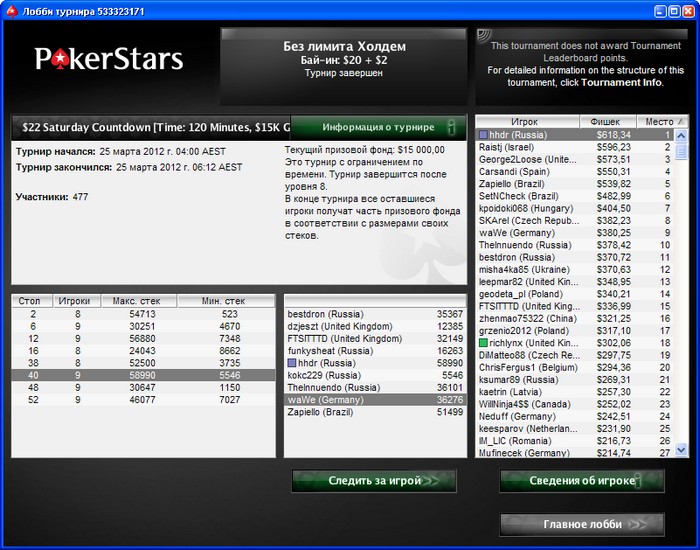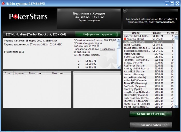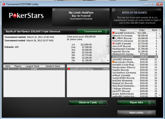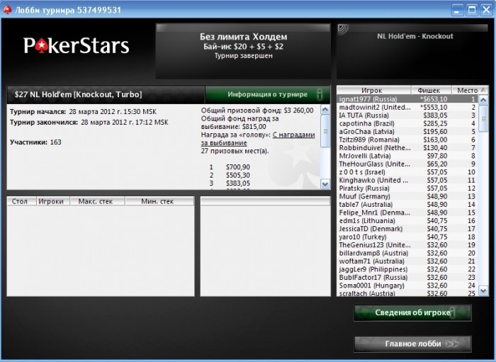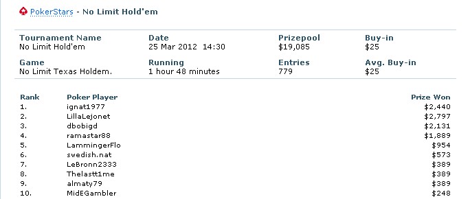Rofl @ 3.4.2012 mcandrews3rd силен конечно. Он вчера этот турнир занес, плюс еще я с ним поделил за 55$ 1-2 место.