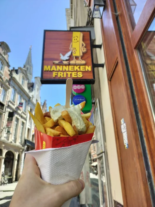 Помимо фонтанов, тема писающих используется и для фастфуда, а именно картошки фри. На английском, кстати, она называется french fries, а за звание ее родины (несмотря на название) спорят Франция и Бельгия. По вкусу, конечно, ничего особенного. Как вообще можно придумать что-то оригинальное из полуфабриката во фритюре?