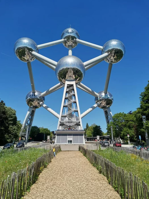 Сегодня еще доехали до Атомиума. Это здание в виде кристаллической решетки железа, построенное к выставке 1958 года. Между сферами идут эскалаторы, а сами они исполняют различные функции - где-то ресторан, где-то обзорная площадка, какие-то вроде просто не используются. Внутрь заходить не стали.