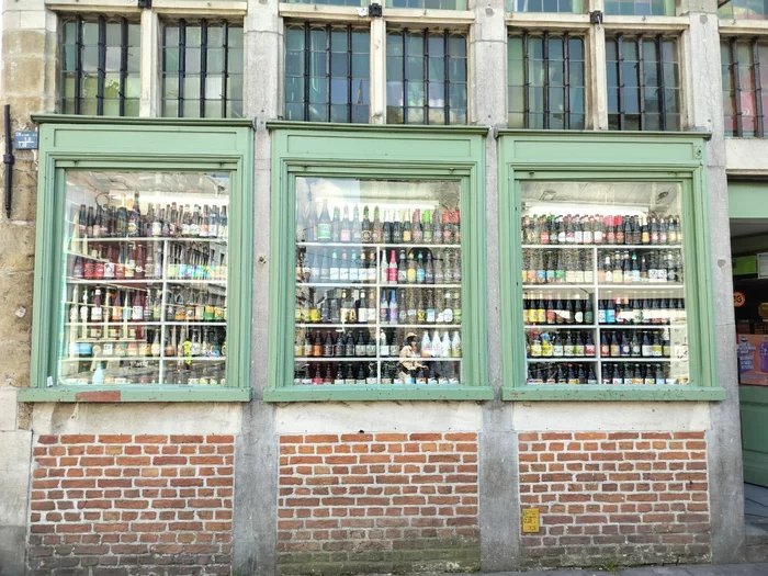 Витрина бельгийского магазина здорового человека - пиво, пиво и ничего кроме пива.
