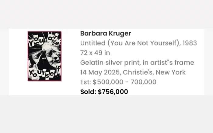 Ну и тиражная работа Барбары Крюгер, в оригинальной раме от художницы за 750к восторг во всех смыслах)