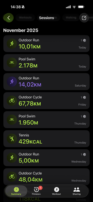 Из приятного - вернулся в теннис. Думал будет хуже с точки зрения ошибок. Но удар, как будто, тот же что и до перерыва зимой. Ну или и тогда его не было, поэтому и сейчас нет разницы🤷🏿 Хуже всего, почему-то, выход к сетке. И ноги очень быстро наелись, минут за 20 всего активности. Все-таки в циклических совсем другие мышцы прокачиваются. Потратил на теннисе 429 калорий за час, так мало только на плавании расходуется.