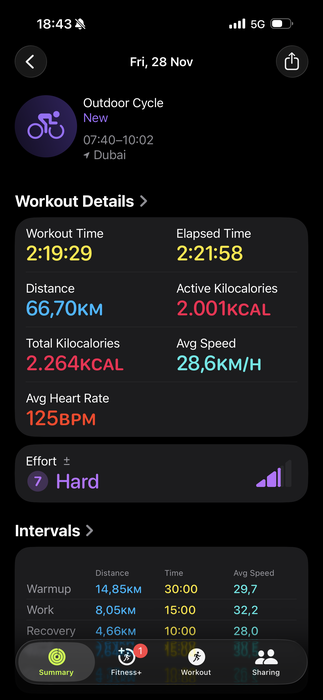 Особенно тяжело в конце недели пришлось. В пятницу съездили впервые в сезоне в Аль-Кудру, проехали под 70 км. В субботу адский фартлек - 7 раз по 1+1 км. Сегодня 10 км кросс и 2 км проплыть.
