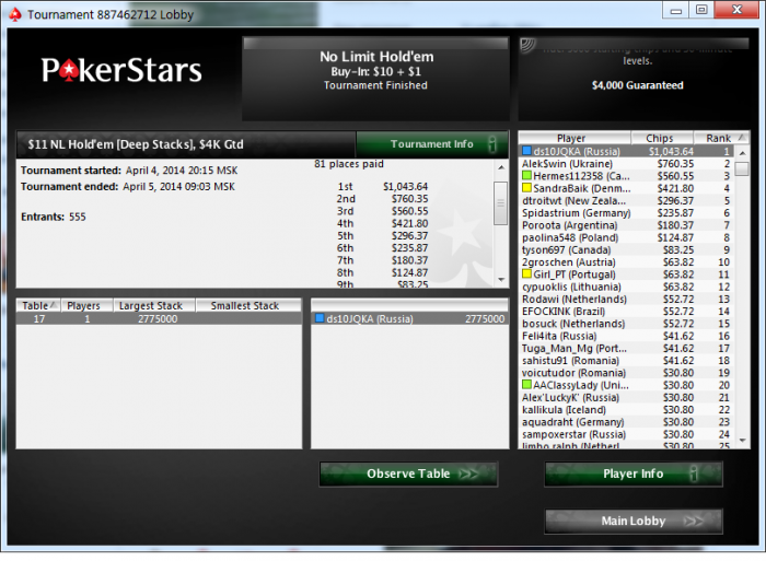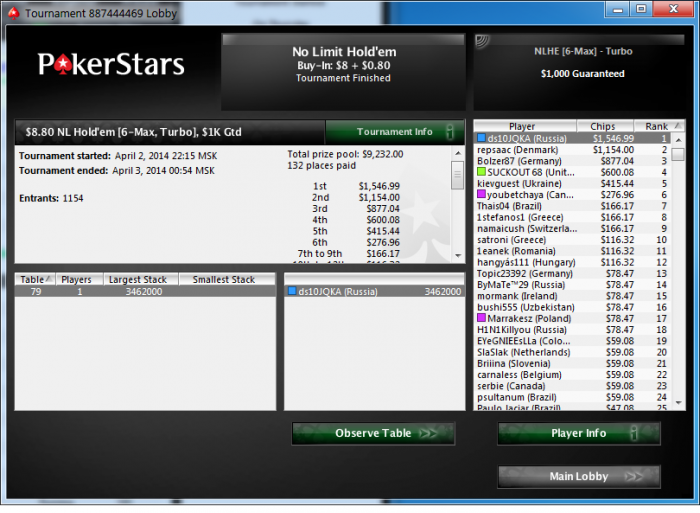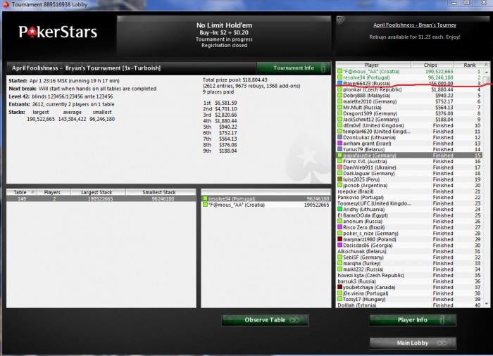 На финалке получились супер глубокие стеки по 200+ бб у 9-ых, а в 3 макс вы понимаете какие стеки получились, из-за того, что блаинды не росли) Хорошо, что состав был полностью из фишей Потихоньку собрали фишки)