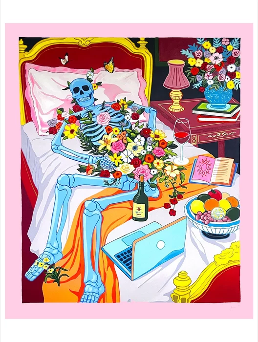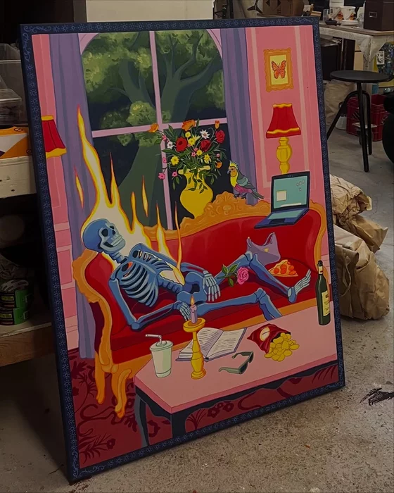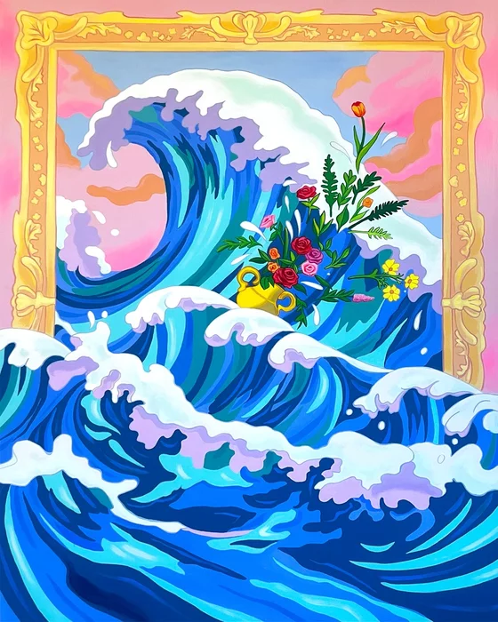 По ее собственным словам, смотрит на мир, как обычная девочка-миллениал. Это видно и по ее картинам. Много ярких красок, цветы, романтически-потусторонняя тематика. Не мой стиль, но интересно. Рисует гуашью и акрилом.