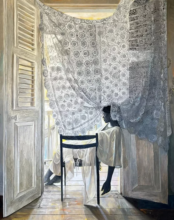 Memoire tissee. Вот эта вещь меня зацепила. В 2025 ее выставляли на Art Basel Miami Beach. Почти уверен, что продали за те же 30-40К.